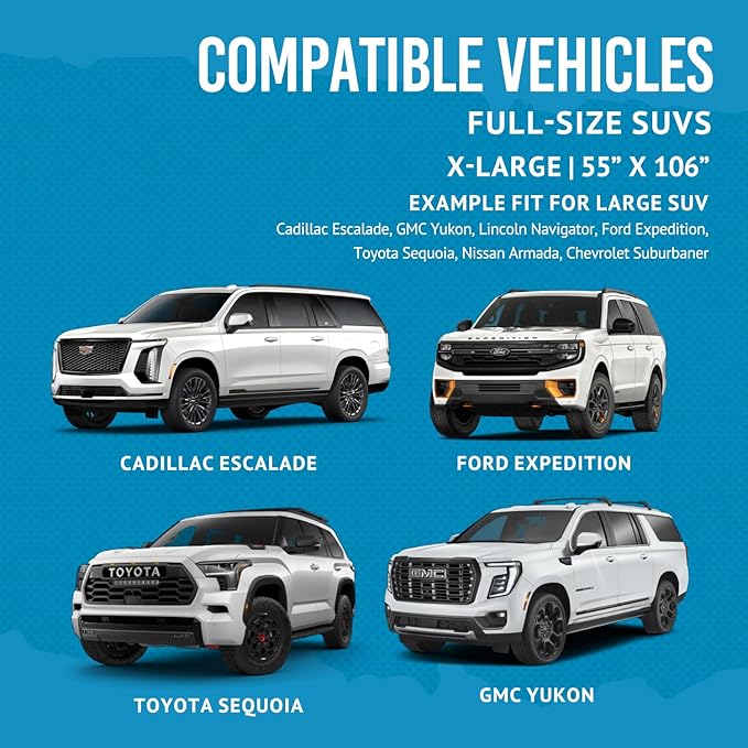 - Versatile Fit: Best cargo mats for back of SUV, these unique design cargo & trunk liner measuring at ( 55" x 106" ) inches. Bulldogology designed pet cargo seat covers to install and remove in under 30 seconds. Secure the covers with easy to use durable headrest adjustable straps, keep covers in place with moisture protection non-slip silicon backing. Each feature was manufactured for ease of use and added versatility.