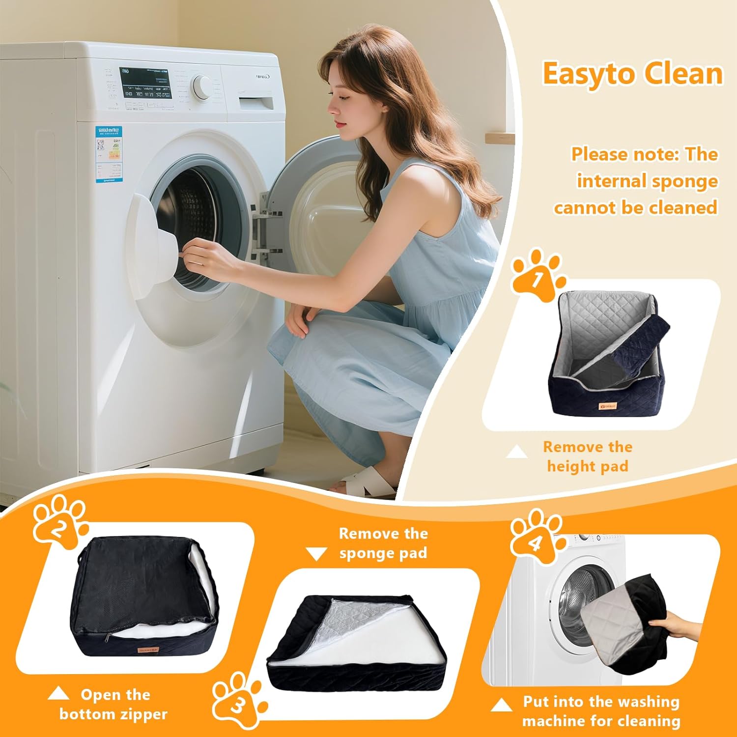 - Easy To Clean and Maintain- This pet car seat features a fully detachable design, with a sliding zipper inside to remove the memory foam and machine wash the seat cover. Very easy to clean. The bottom of the booster seat is waterproof, which can prevent accidents (please note that the internal foam cannot be cleaned).