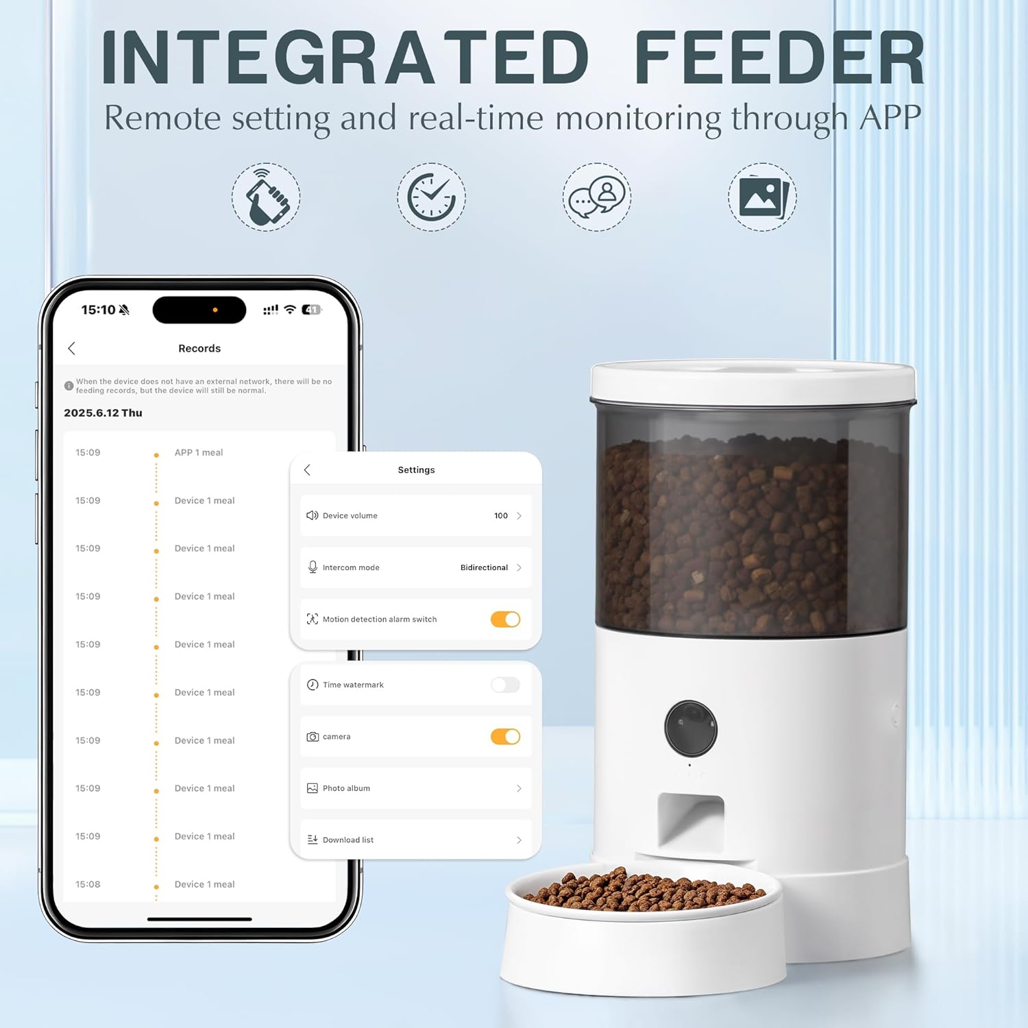 - Smart Timed Remote Control:Whether you're at the office or traveling, adjust portion sizes, feeding times, and receive notifications to ensure your cat never misses a meal.
