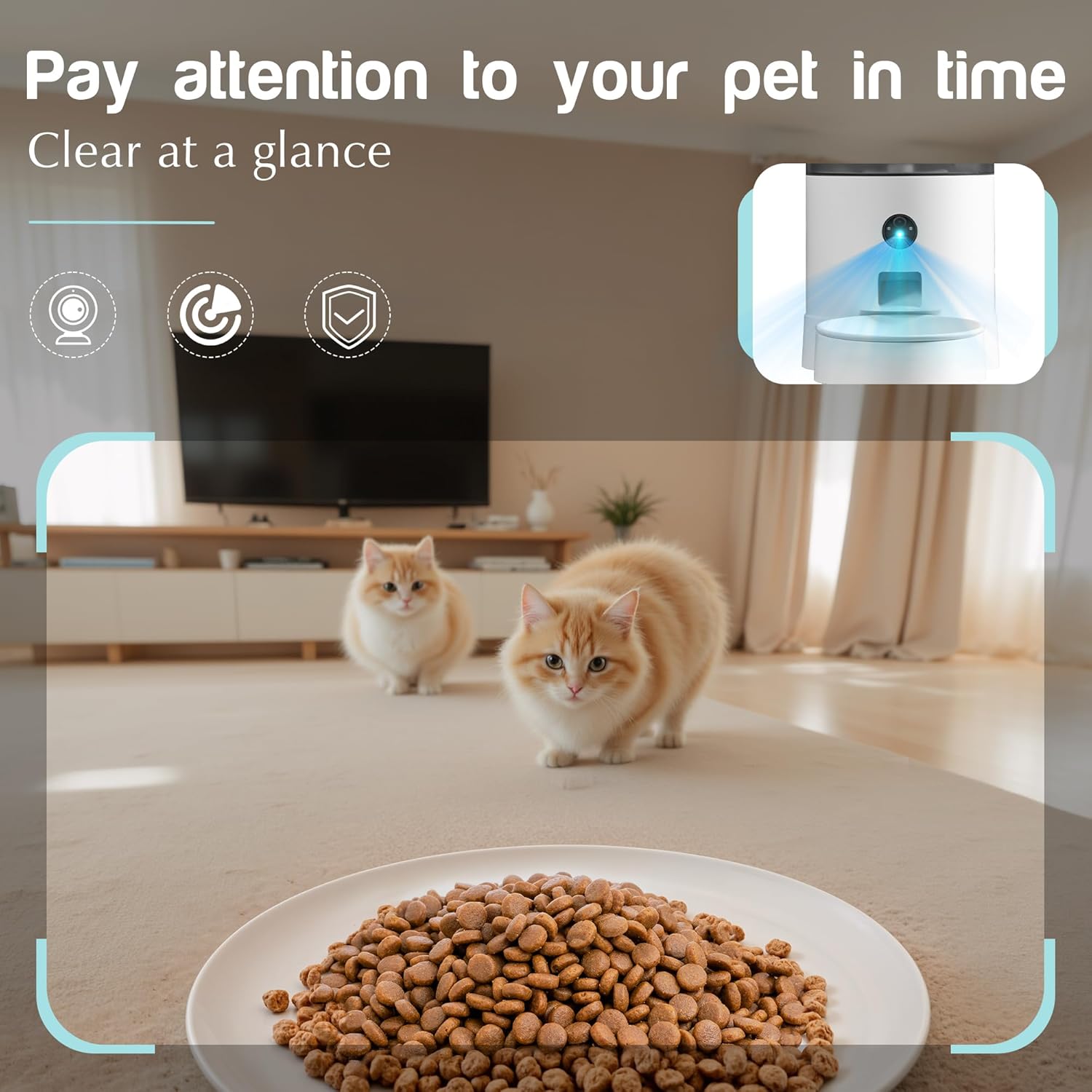 - Real-Time Visual Monitoring:Equipped with a high-resolution camera and two-way audio, watch your cat eat, interact with them remotely, and check on their well-being anytime. Stay connected with your furry friend no matter where you are.