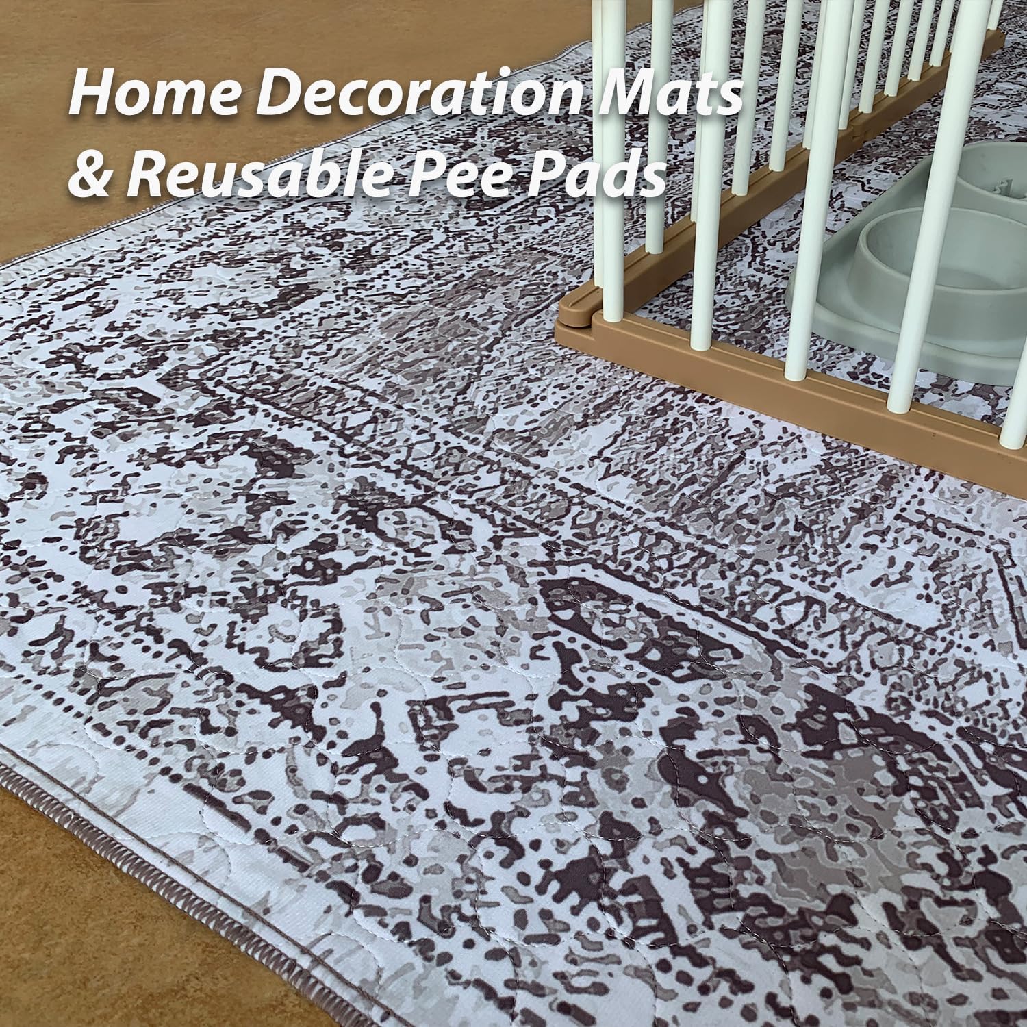 nunubaby Washable Pee Pads for Dogs, Stylish, Non-Slip and Leak-Proof Pee Pads. Reusable Potty Pads for Dogs for Crates and Floors.(Brown/Geo, 54" x54")