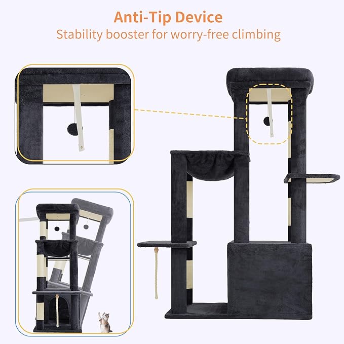 - 5 Sisal Scratching Posts: Cats really like to sharpen their claws, this cat tower for large cats features durable 6 natural sisal scratching posts not only provide plenty of space for cats to release their natural instincts, but also protect your furniture
