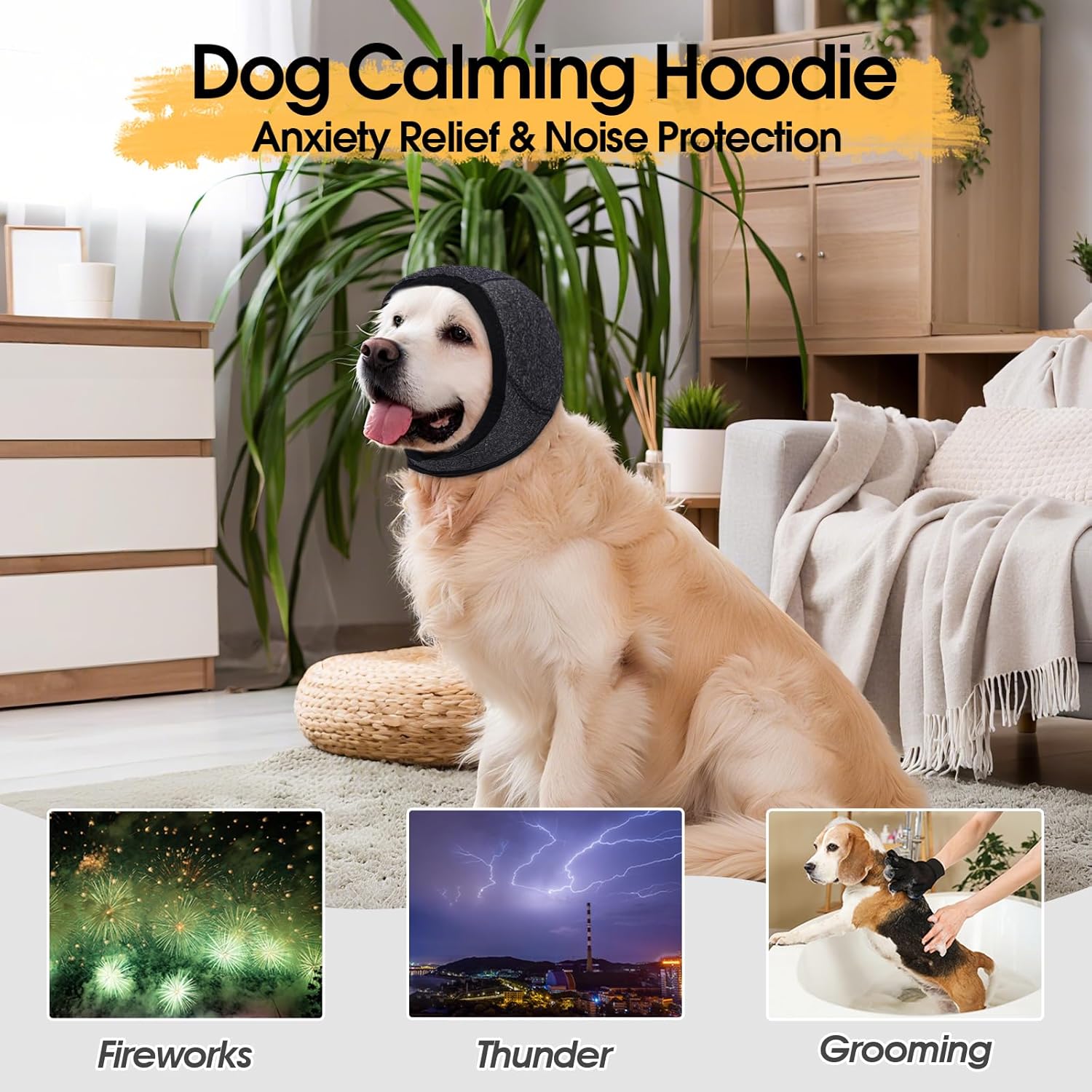Dog Calming Hoodie, Dog Ear Muffs Noise Protection & Anxiety Relief, No Shake Ear Wraps for Dogs Quiet Ears Cover Headband for Fireworks Grooming Swimming Bathing Force Drying