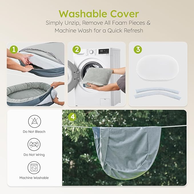 - No Mess, No Stress: This washable dog bed includes a full TPU waterproof lining that blocks spills, drool, and puppy accidents. Just unzip the removable cover and take out the foam pieces for easy machine washing