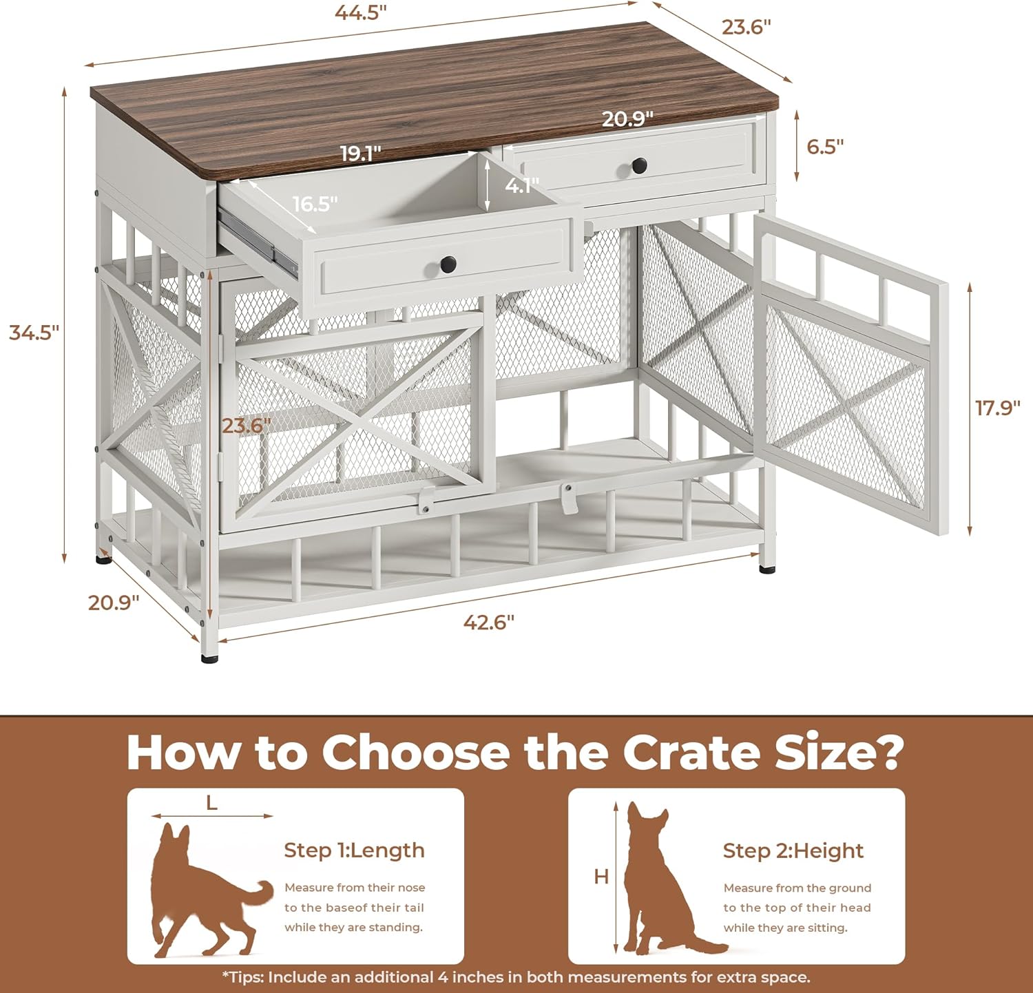 - Large Storage Space: Compared with ordinary dog cage furniture, we specially designed double-layer drawers + wide desktops to easily store pet supplies, toys and other sundries, making the living space of your dog more tidy and orderly, and you can also worry less