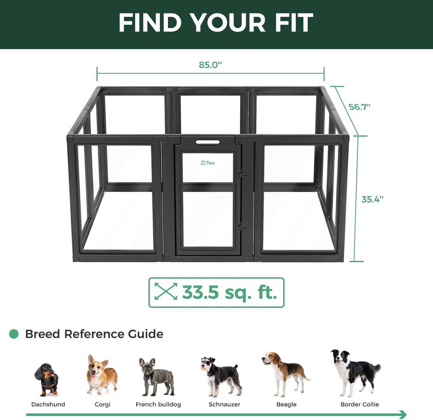 - Escape-Free, Safe Play: Transparent and seamless panels create a secure playpen to keep energetic dogs safely inside, preventing them from climbing out or getting their paws stuck in gaps.