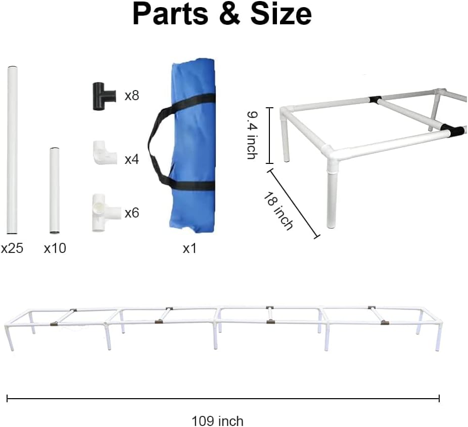 - Dimensions: 9.5 inches high - 18 inches wide - 9 feet long