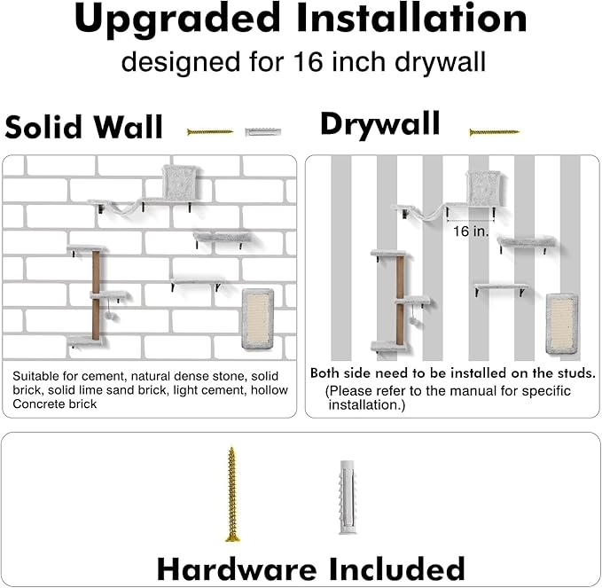 - Effortless Setup, Instant Cat Paradise! Our ingenious multi-functional cat climbing shelves is designed for victory. Imagine: in minutes, not hours, you'll be transforming that blank wall into a thrilling cat climbing wall systems. Clear instructions, smart design, and frustration-free parts mean anyone can be the hero who builds the ultimate cat playground. Whether it's a sun-drenched balcony lookout, a cozy corner in your bedroom retreat, the heart of the living room action, floating cat shelves seamlessly adapts – turning your entire home into their personal, vertical kingdom.