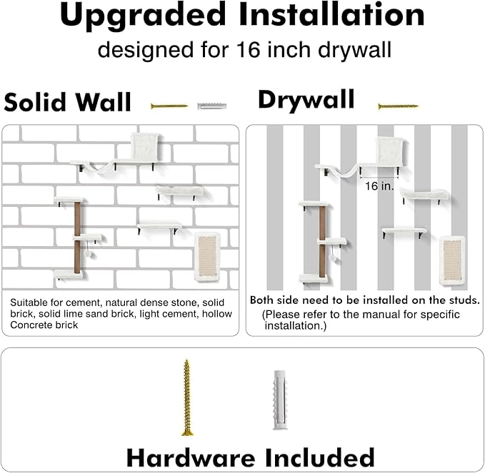 - Effortless Setup, Instant Cat Paradise! Our ingenious multi-functional cat climbing shelves is designed for victory. Imagine: in minutes, not hours, you'll be transforming that blank wall into a thrilling cat climbing wall systems. Clear instructions, smart design, and frustration-free parts mean anyone can be the hero who builds the ultimate cat playground. Whether it's a sun-drenched balcony lookout, a cozy corner in your bedroom retreat, the heart of the living room action, floating cat shelves seamlessly adapts – turning your entire home into their personal, vertical kingdom.