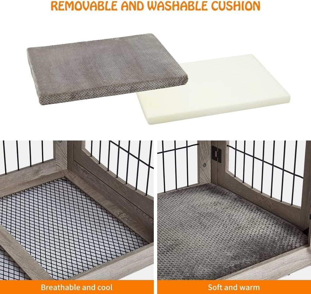 - 🐕[Double-Door Design and Double Drawer] The crates for dogs indoor has two doors—a front door and a side door—for easy access for your dog. The double-door design adapts to different spaces, and you can choose to have the side door open left or right. It also comes with two drawers for additional storage space.
