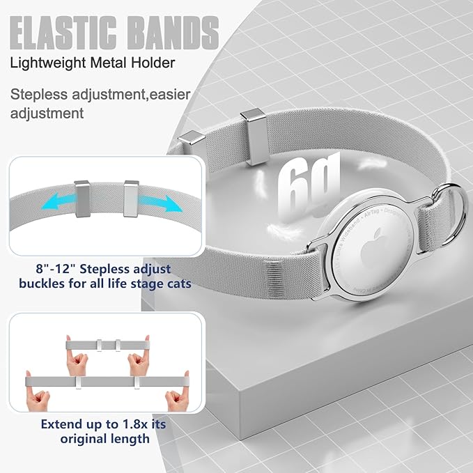 - Stepless Adjustment: Designed for a perfect fit and aesthetics, the cat collar AirTag holder provides seamless comfort with its smooth, hassle-free adjustment. Say goodbye to guessing or pulling. NOTE: This is not a breakaway collar, it uses elastic properties to prevent your cat from choking.