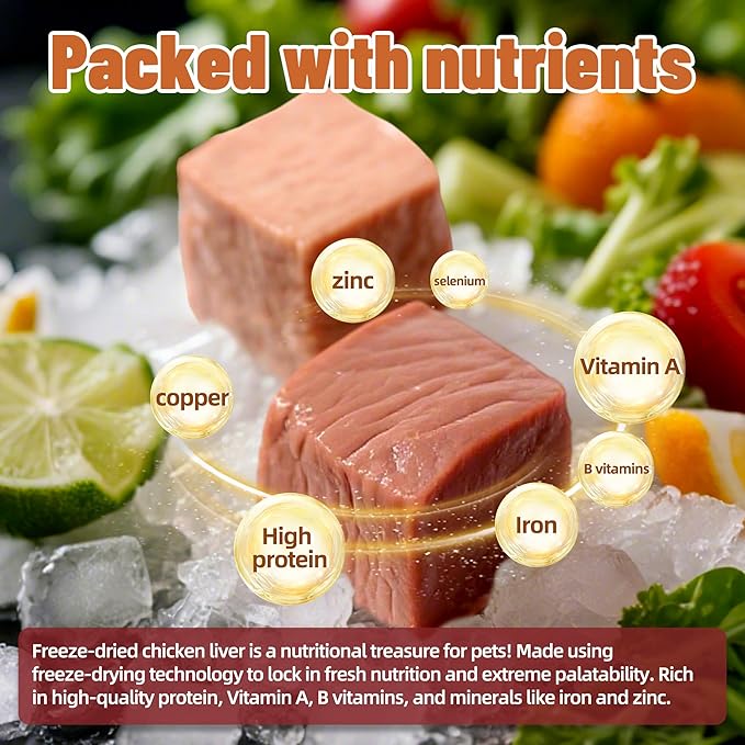 - Freeze Dried for Safety & Freshness:Crafted from pure chicken liver, these dog liver treats are made using a freeze-drying process that effectively locks in natural nutrients, flavor, is the benefits of raw ingredients, making it an ideal choice for both everyday enjoyment and supplemental nutrition.