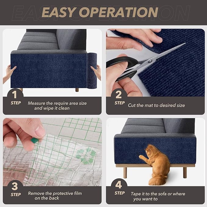 - 【Trim-to-Fit Design for DIY Flexibility】Customize with ease! This mat can be trimmed to any size or shape—round corners, stair edges, or other specific shapes. Perfect for repairing and reinforcing scratching posts, cat trees, and houses, wall furniture, keeping your cat’s favorite spots in top condition.