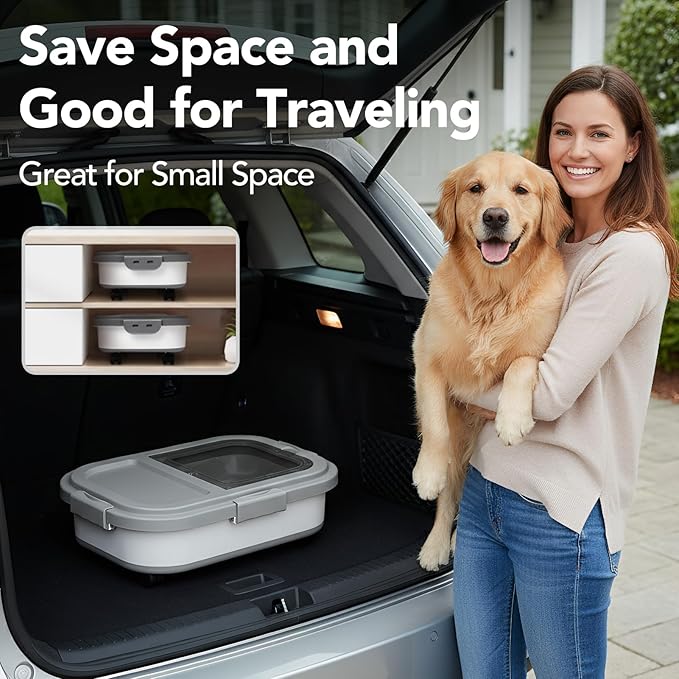 - Space-saving - Foldable: Adjust the container capacity based on the amount of dog food stored to keep food fresh. Its foldable design makes it easy to store and saves space. It's also an essential item for outdoor travel.