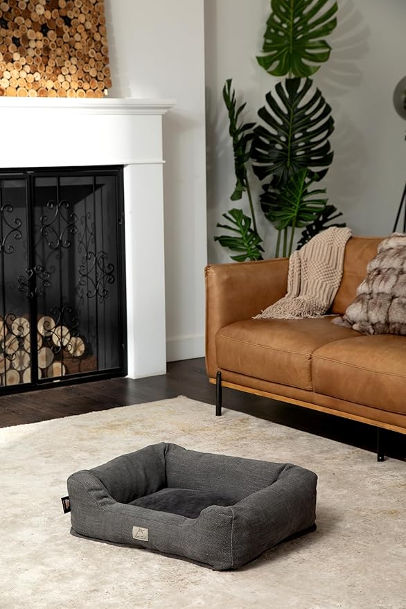 Furry's Paradise Cuddler Waterproof Bolster Pet Bed with Recycled Fibers and Non-Slip Bottom. (Dark Gray, Medium)