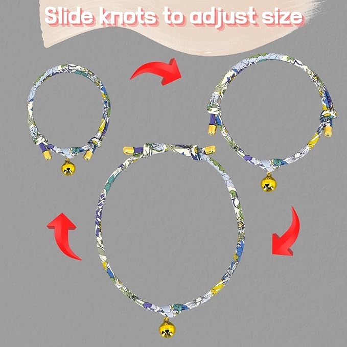- [Adjustable Fit from Kitten to Adult Cat] One size fits most — from 6" to 13" — simply adjust the sliding knots to get the perfect fit for your kitten or grown cat. Great for multi-cat households or growing fur babies.