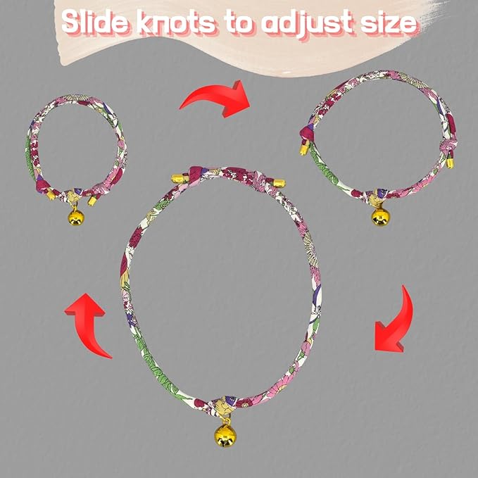 - [Adjustable Fit from Kitten to Adult Cat] One size fits most — from 6" to 13" — simply adjust the sliding knots to get the perfect fit for your kitten or grown cat. Great for multi-cat households or growing fur babies.