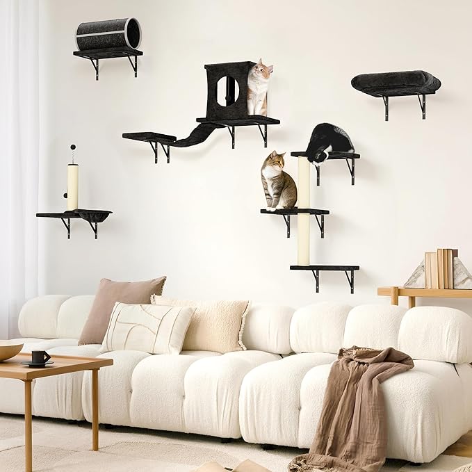 - SPACE SAVING - Use our wall mounted cat shelves to optimize your space. They are perfect for small or modern rooms, saving your floor space. This design allows your cat to climb and jump while minimizing the impact on your living area, so both you and your cat can enjoy leisure time together.