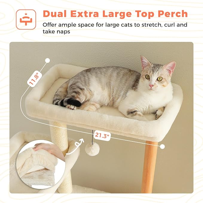 - Ultimate Stability with Dual-Layer Base & Solid Wood: Features an extra-thick, double-layer base and solid wood construction for unparalleled stability and safety. This robust structure firmly supports active and heavy cats (up to 40+ lbs), eliminating any worry of tipping or wobbling.