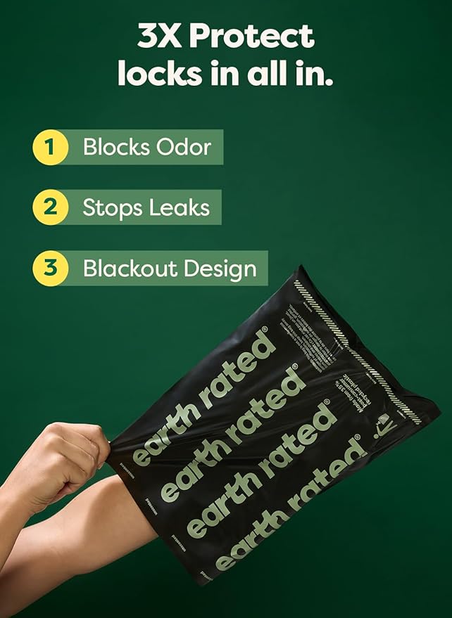 Earth Rated Odor-Blocking Poop Bags for Dogs with 3X Protect, Guaranteed to Block Smells & Leak-Proof Performance, Conceals Smell & Mess, Unscented, 240 Count