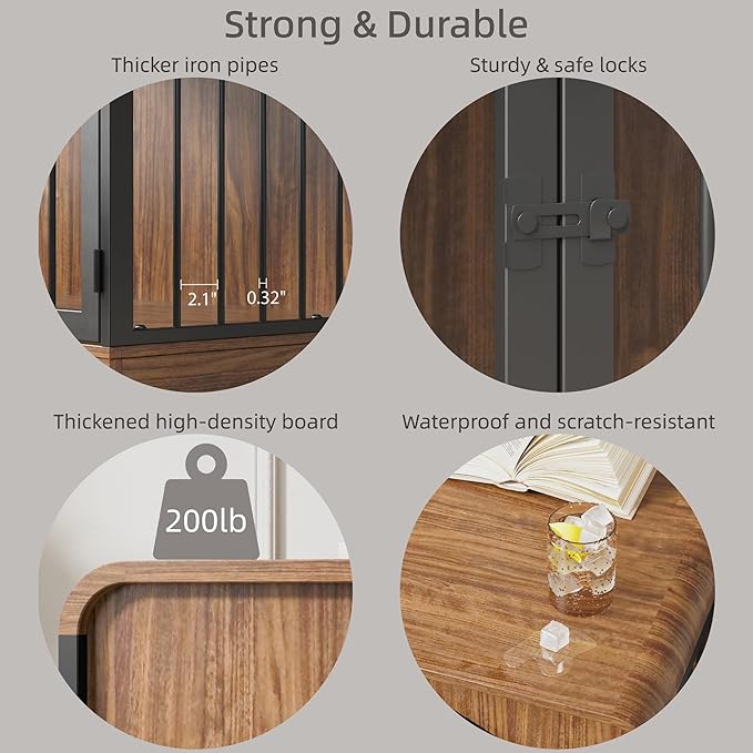 - 💪【Strong, Durable & Easy to Clean】 Crafted from high-quality MDF wood and thick steel bars, this furniture-style dog crate is built to last. The waterproof finish resists scratches and stains, while the smooth surface makes cleaning effortless — simply wipe with a damp cloth to keep it looking new.