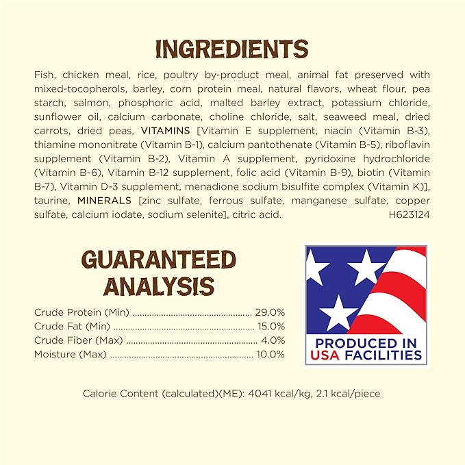 - Dry cat treats with unique shapes to keep her interested and a crunchy texture to please her palate